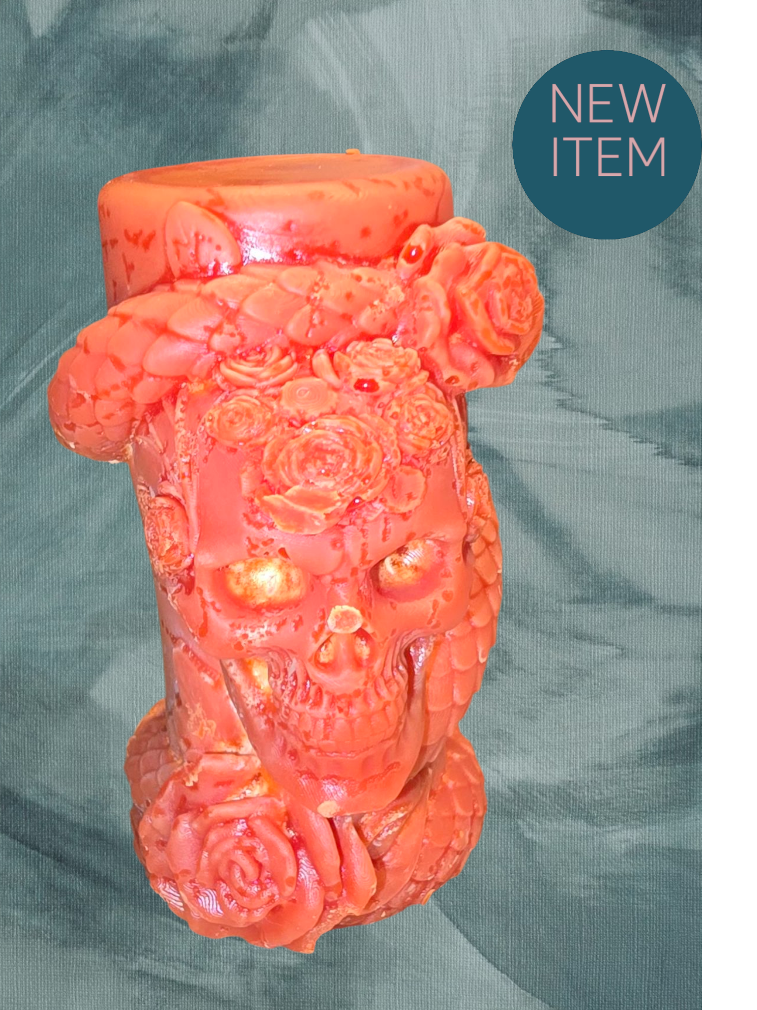 Topped with snakes, roses, and a haunting skull β this candle is a spellbinding centerpiece for your fall decor.
